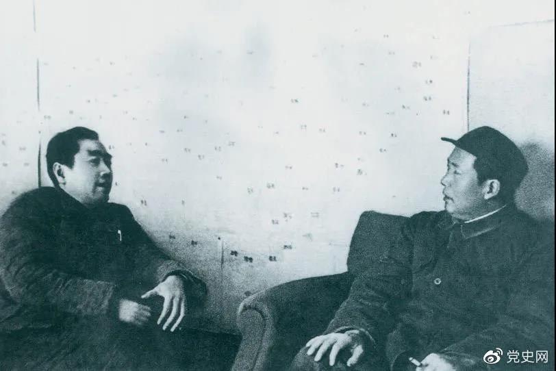 图为毛泽东和周恩来在河北西柏坡