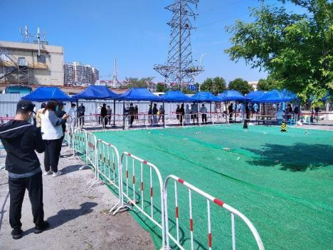 5月5日旺泉街道在大龙物资公司场地内的核酸检测常驻点正式建成,5月6日正式启用。