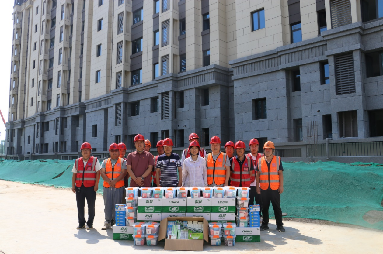 6月27日,大龙控股领导亲临项目,为高温一线职工进行慰问,送上水杯,蚊香液,毛巾等防暑降温用品,为奋斗在一线的职工带来丝丝凉意,提醒大家在夏季作业时注意身体,做好高温下自我调节,防止中暑生病,根据区总工会相关工作要求,公司工会积极开展多样化的送清凉走访慰问活动,为公司机关及13家分子公司一线职工发放清凉包。